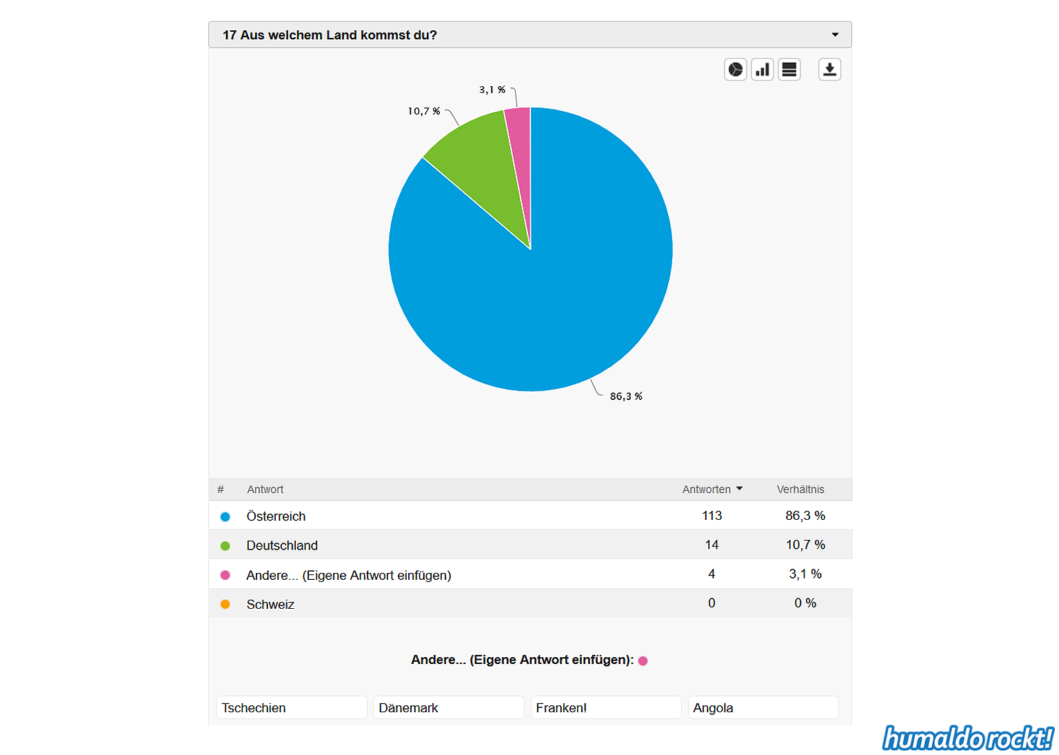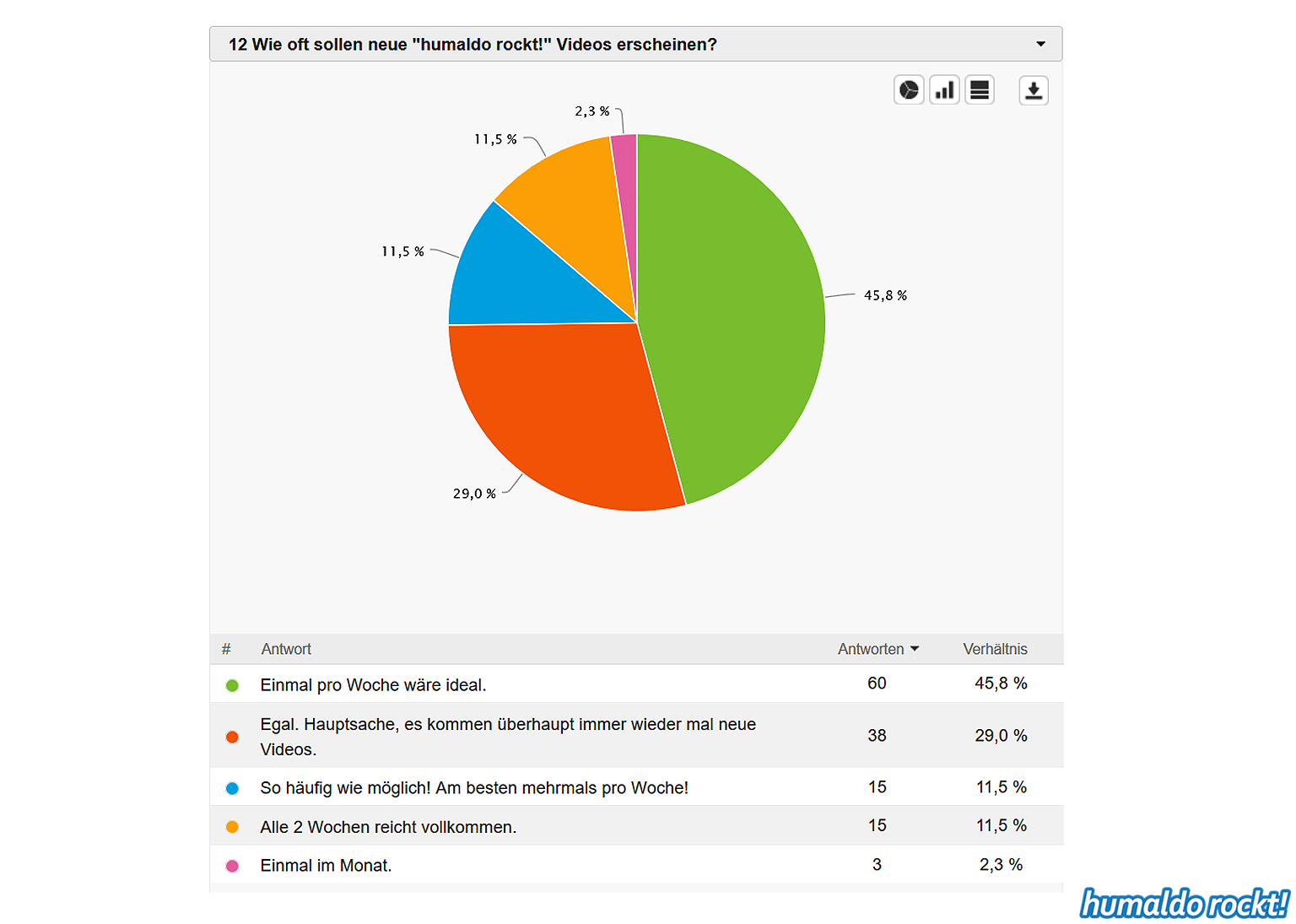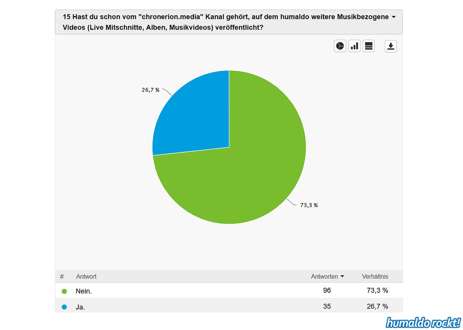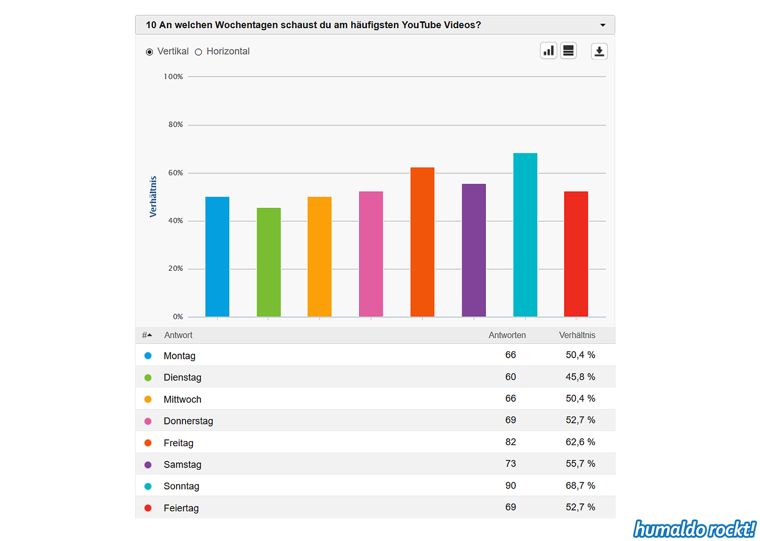 Ergebnisse der humaldo rockt! Umfrage vom Sommer 2018 1. September 2018 Die Ergebnisse der großen humaldo rockt! Umfrage vom Sommer 2018 sind da! Das könnte dir auch gefallen: 20:21 Das Area53 FESTIVAL 2021 findet statt! Alle Infos & Interview mit den Veranstaltern 🤘🤘🤘 9. Juni 2021 16:06 Wenn Musiker, Berühmtheiten und Idole sterben… ⚰️ 7. April 2021 Midriff • Huge Grant • Projekt Steinhof • Dystrust • Ghidrah | AUSTRIAN 🤘🤘🤘 BANDS #1 25. Januar 2018 13:31 METAL ON THE HILL 2021 • Festival Bericht 18. August 2021 humaldo macht videos. // vlogaldo #027 26. Mai 2019 humaldo goes INTERNATIONAL 🤘🤘🤘 • Internationaldo #01 13. September 2022 Keine Lust mehr aufs Blablabla-Vloggen • #dienstalk ☕️ 14. März 2023 Wie es 2026 hier weitergeht. Und überhaupt: IST HIER NOCH JEMAND?! 20. Januar 2026 Metal-Gossip NERVT. (Alternativtitel: BLABBERMOUTH knallhart ENTLIKED!!!) 30. April 2019